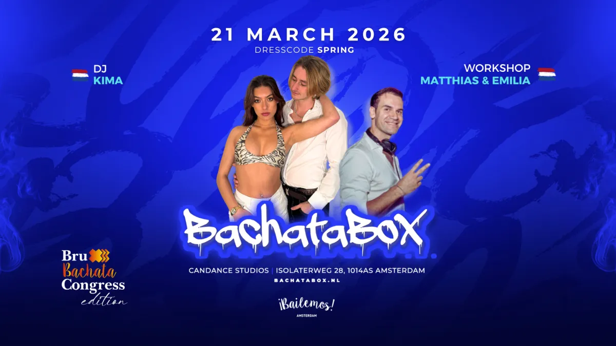 BachataBox is Bailemos Amsterdam’s signature 100% Bachata social dance event, bringing together passionate dancers for an unforgettable night of music, movement, and connection.